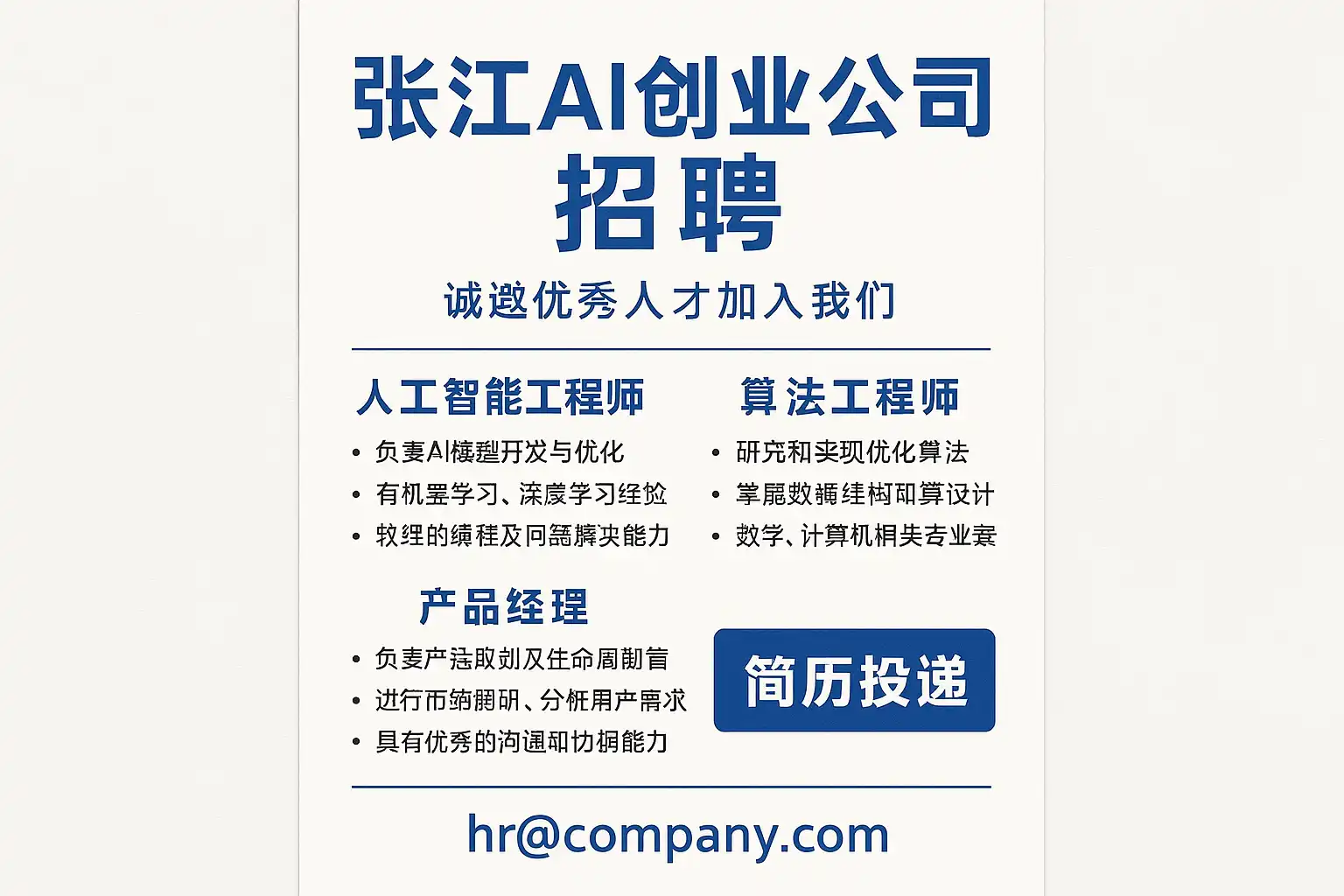 - 典型岗位与技能拆解如下(结合张江产业结构与AI创业阶段):