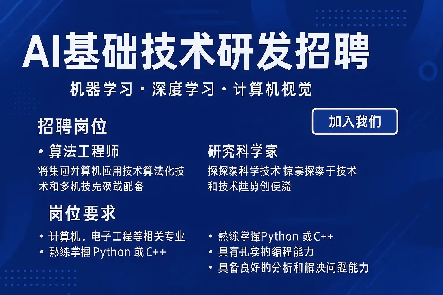 针对AI基础技术研发岗位,推荐以下招聘渠道: