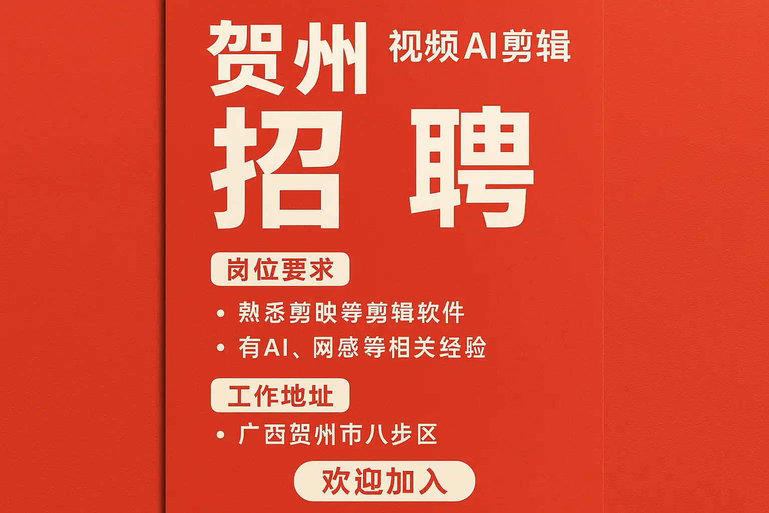 贺州视频AI剪辑招聘最新信息,如何快速入职?