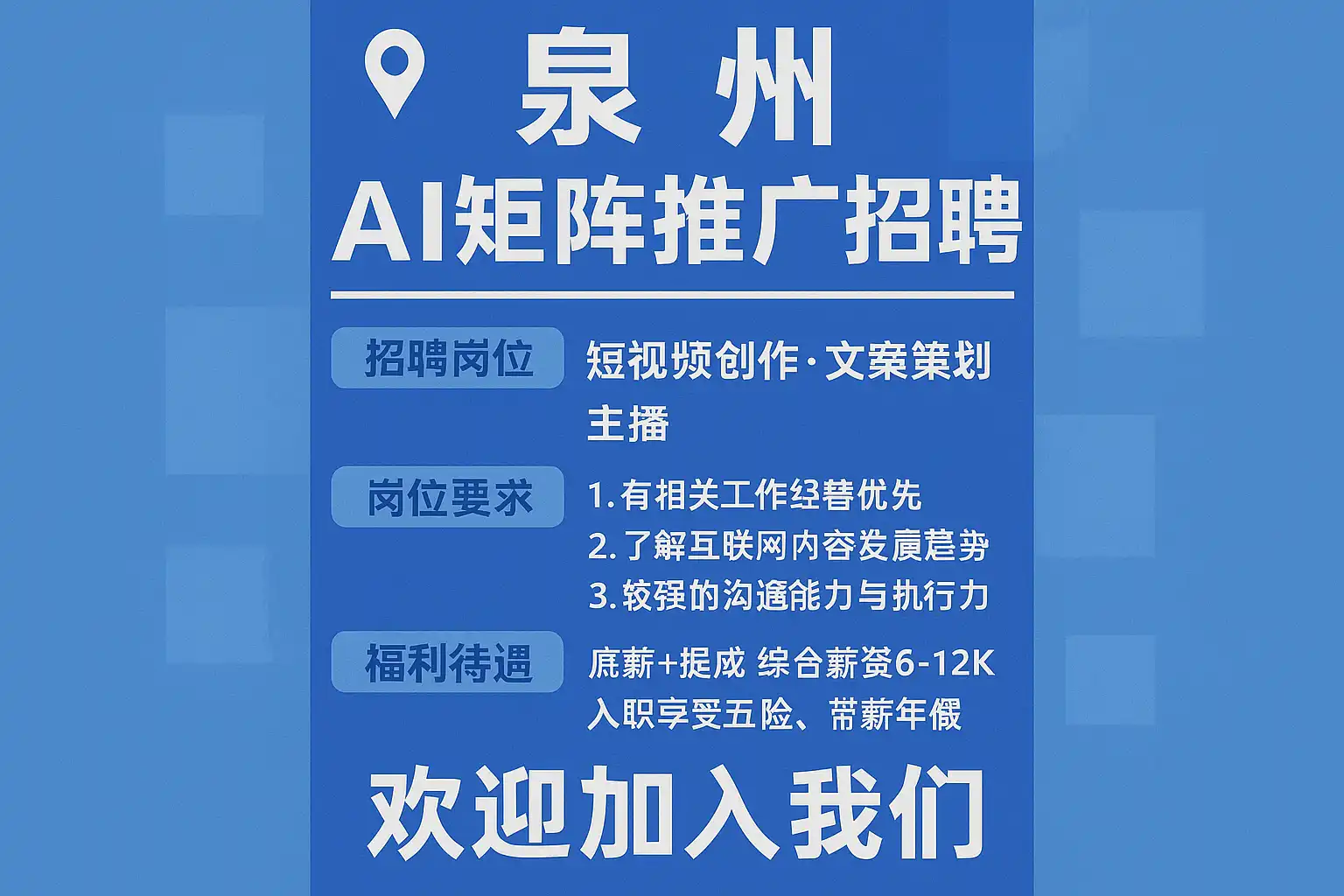 泉州AI矩阵推广招聘最新信息,如何快速加入泉州AI团队?
