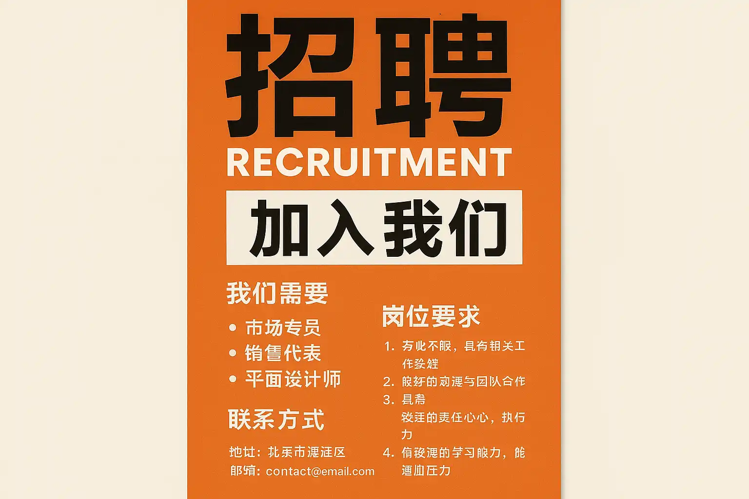 AI提示词模板(用于生成招聘简章)