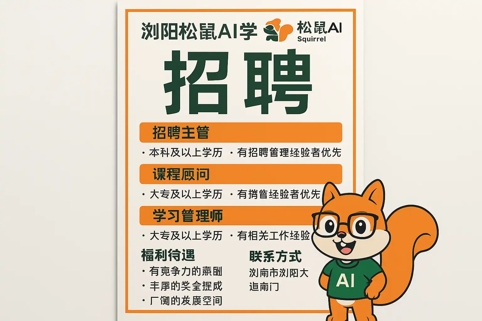 浏阳松鼠AI学校招聘新岗位有哪些?