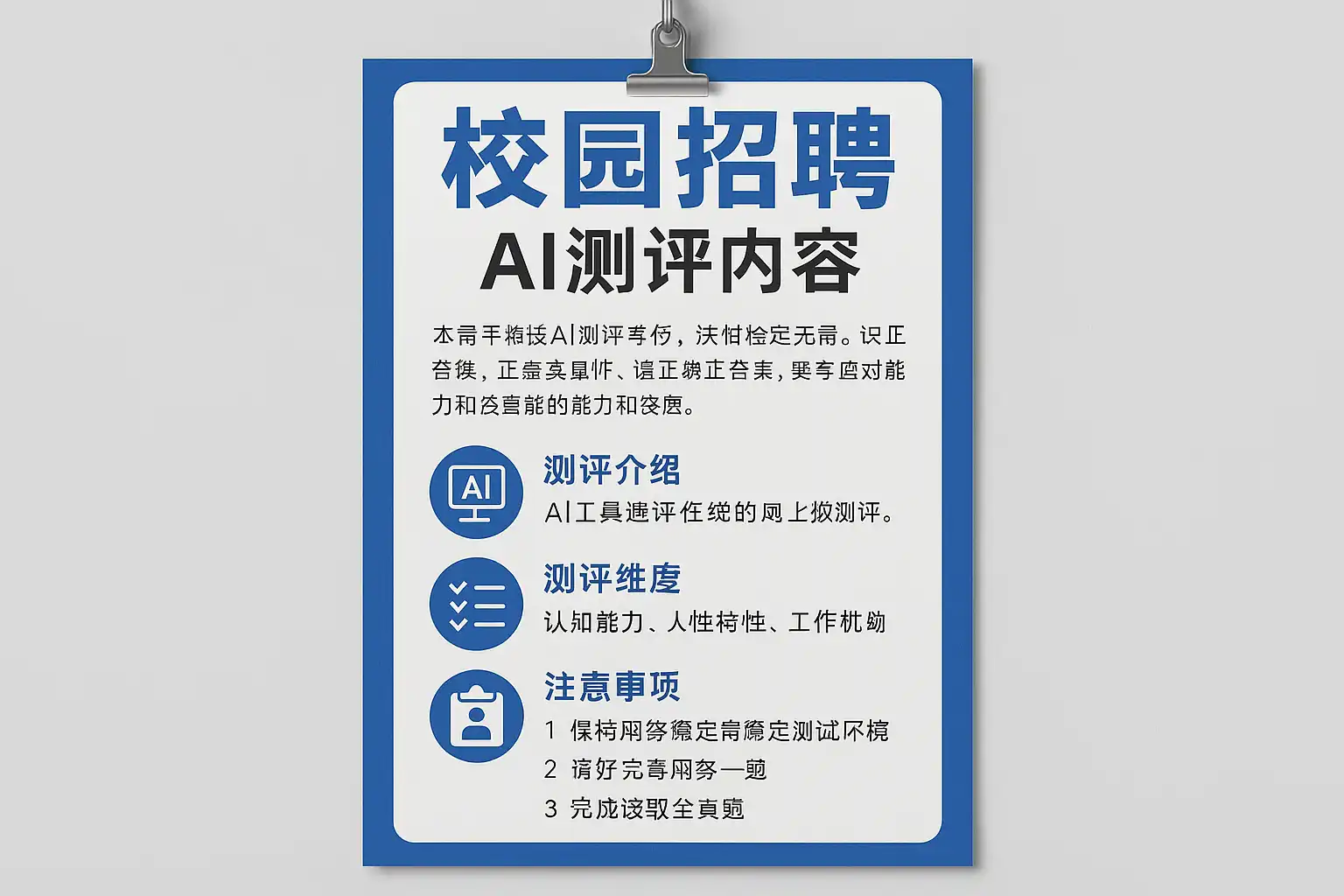 校园招聘AI测评内容通常涵盖多个项目,主要包括: