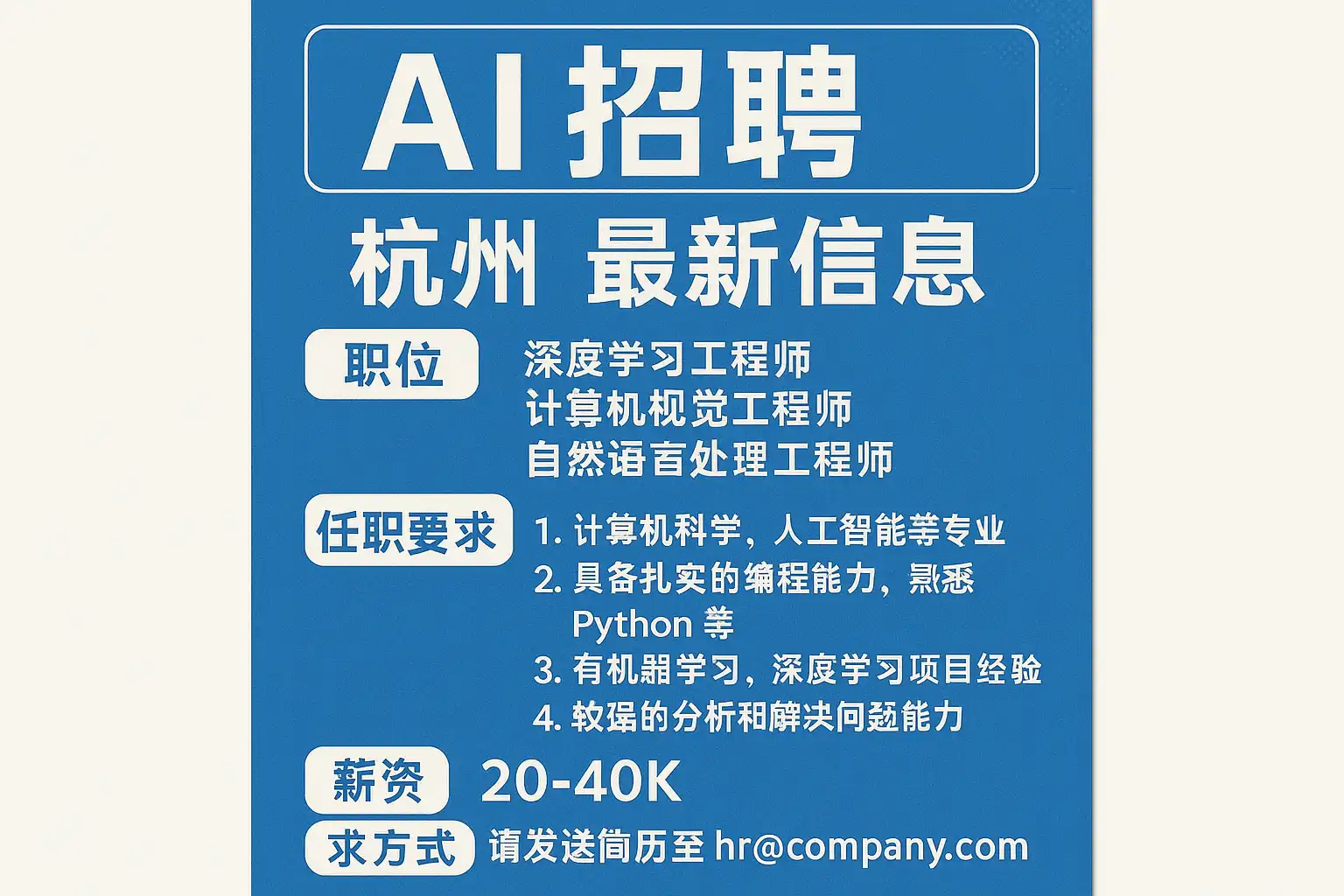 通过结合以上渠道,可以实现信息的多维度覆盖,确保不错过任何杭州AI招聘机会。