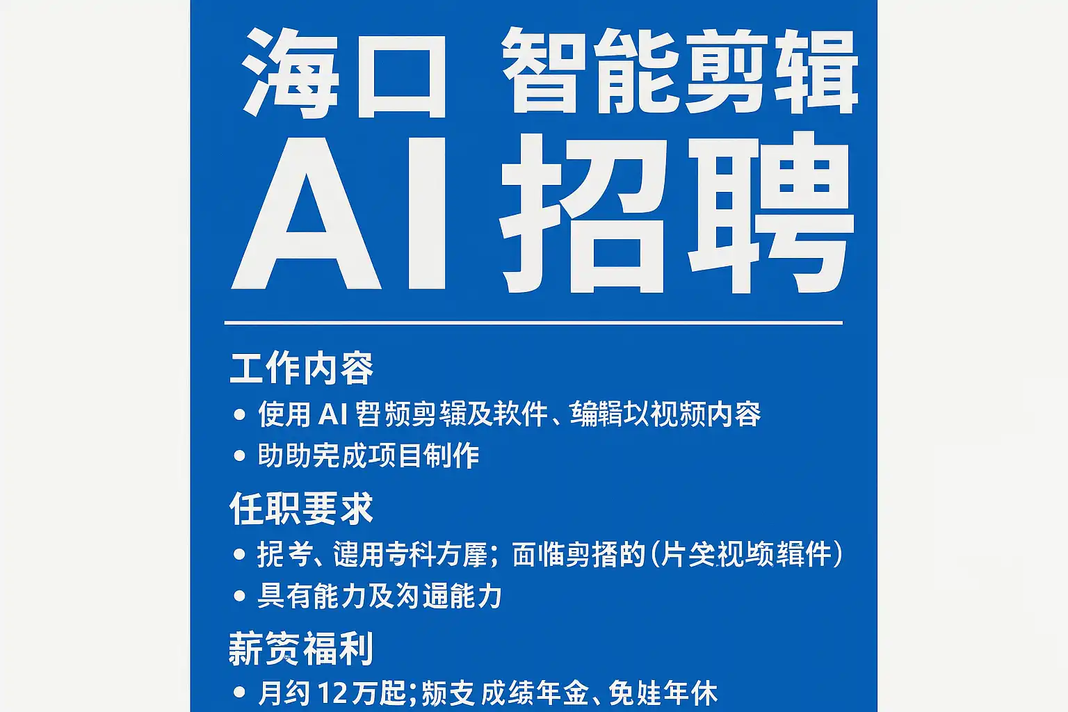 一、海口AI智能剪辑招聘现状与趋势、