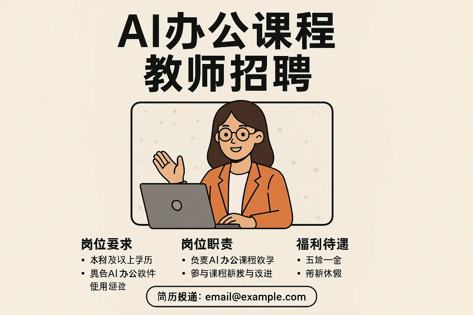 - 职位要求:包括AI办公技能水平、教学经验、学历背景等。