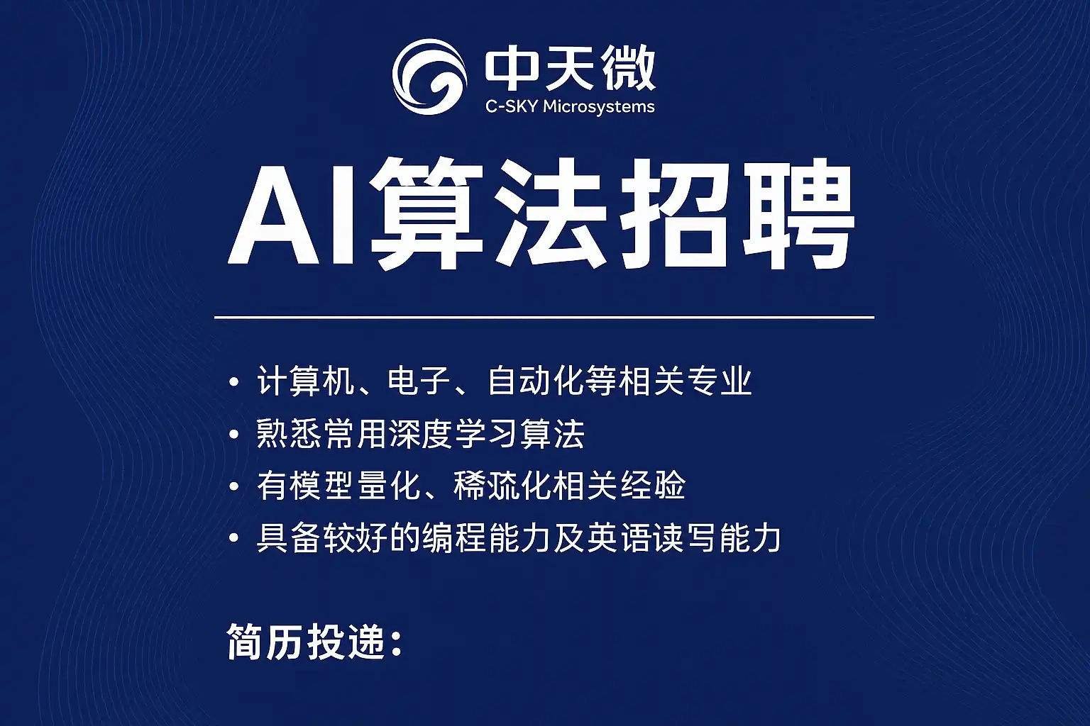 我最近关注中天微的招聘动态,想了解一下中天微AI算法招聘的最新信息,包括招聘时间、岗位需求和申请流程等,方便我做好准备。