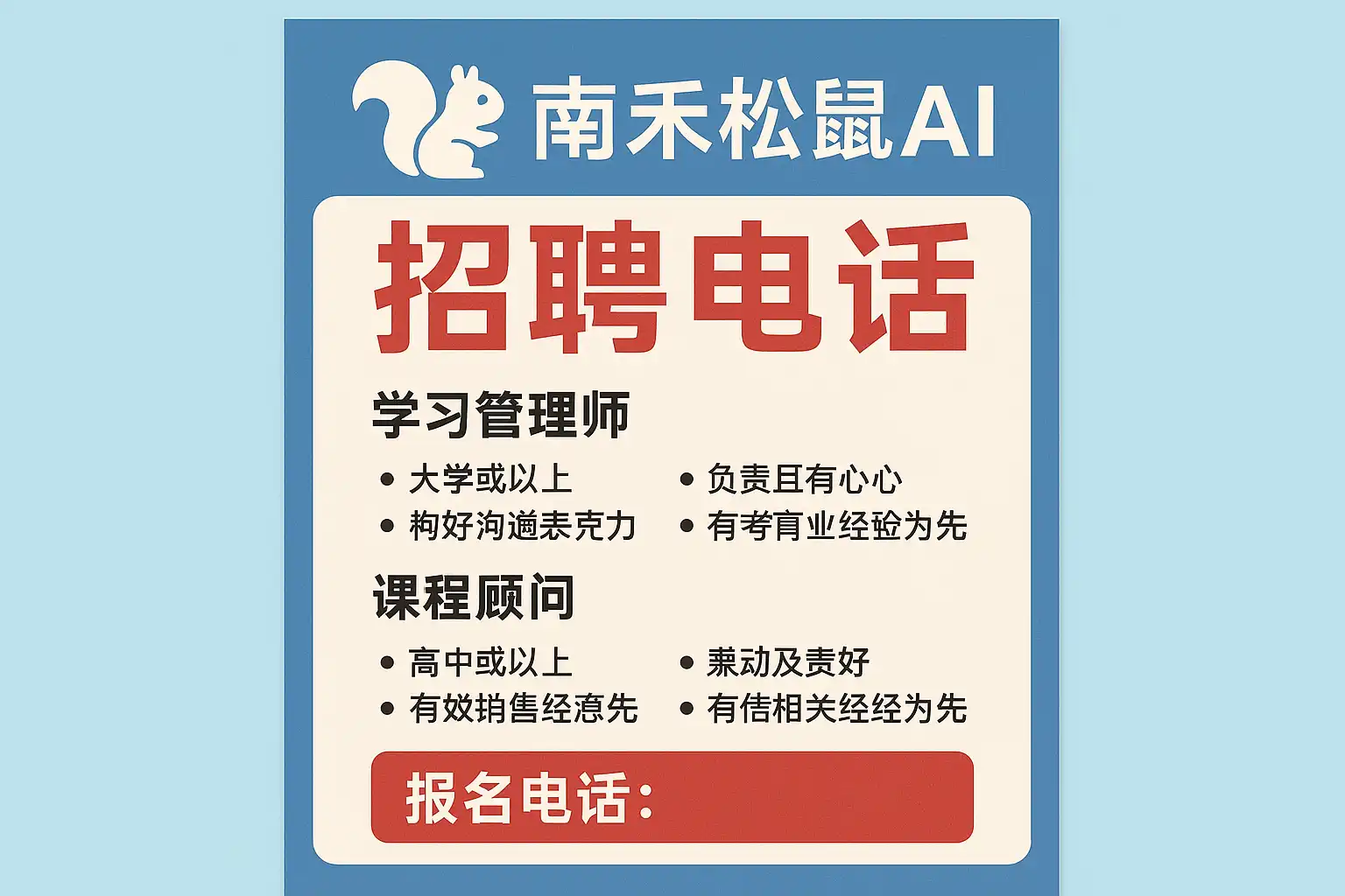 南乐松鼠AI招聘电话是多少?快速联系松鼠AI招聘团队了解详情