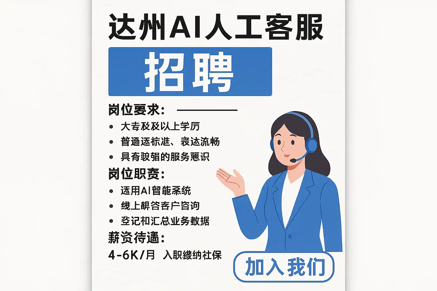 达州AI人工客服招聘最新信息主要包括以下几个方面:
