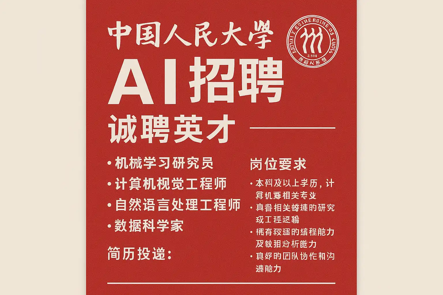 作为一名即将毕业的学生,我一直在关注人民大学AI招聘的最新动态。想知道目前有哪些岗位开放,招聘的具体时间和流程是什么?