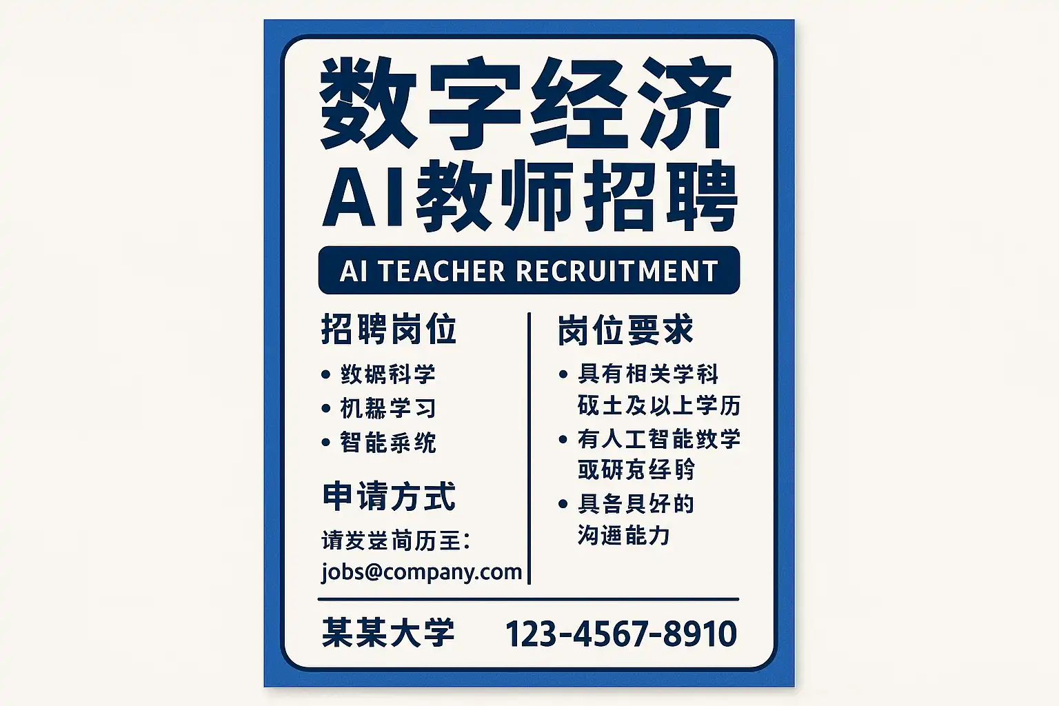 - 抬头:岗位名称+学科领域(如“AI与数据科学讲师”)。