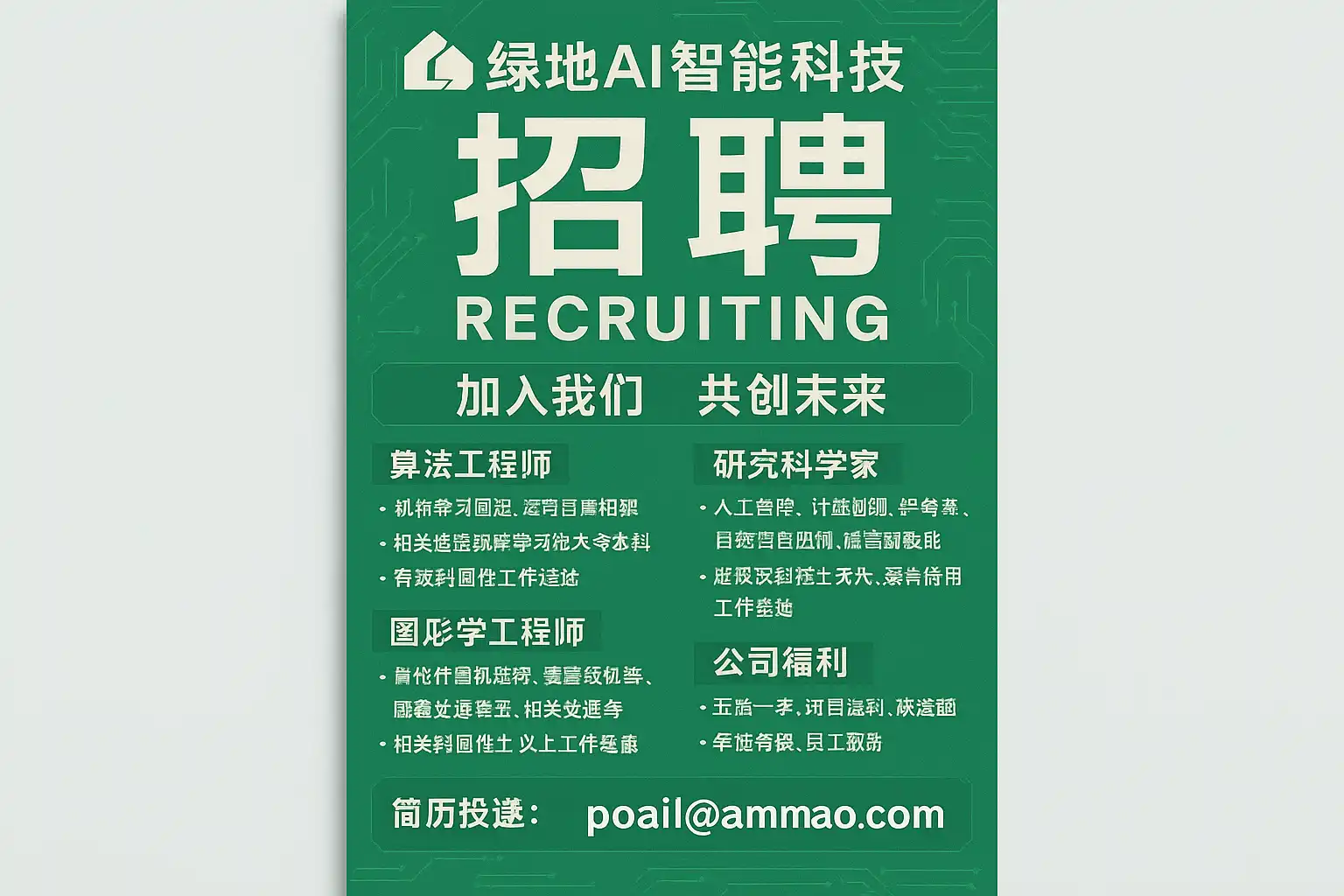 - 及时关注招聘动态:订阅绿地AI智能科技官方招聘频道,第一时间获取岗位信息。