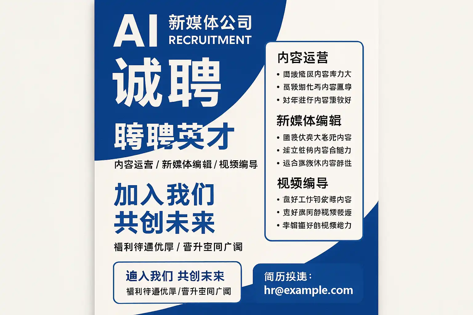 - 关键词优化:自然融入Ai新媒体招聘相关关键词,如“AI内容生成”、“数据分析”、“新媒体运营”。