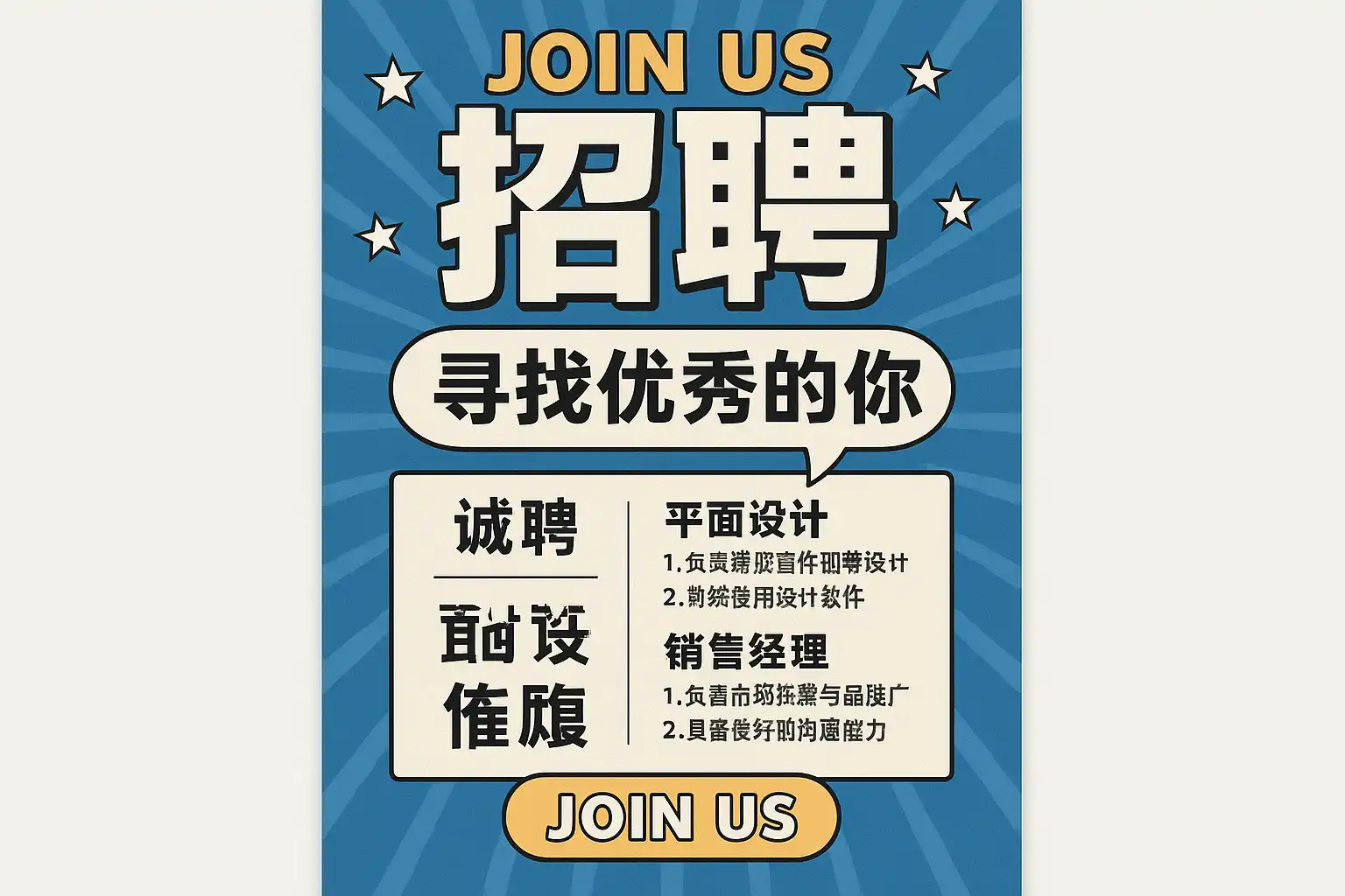 要让招聘海报在视觉上更具吸引力,AI可从以下角度优化: