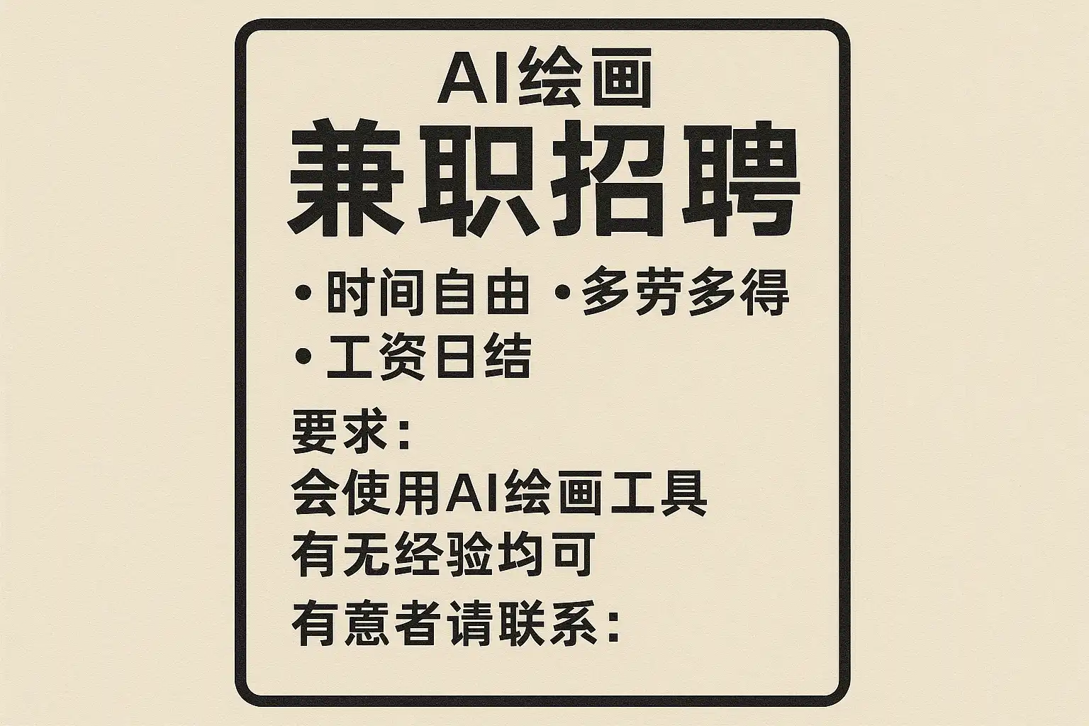 - 专业兼职APP:如兼职猫、斗米兼职,支持筛选AI绘画相关岗位。