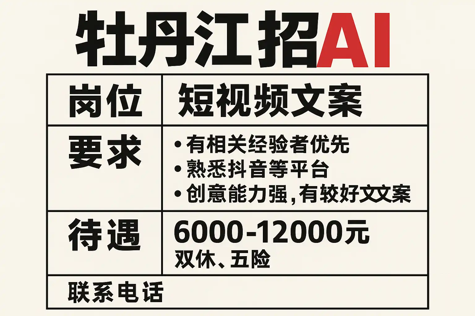 一、岗位速推清单(面向牡丹江及周边)
