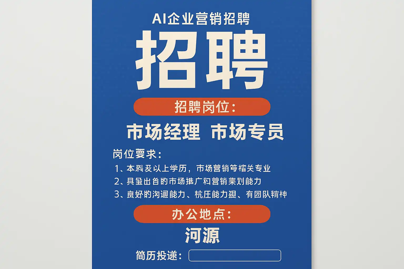 河源AI企业营销招聘最新动态主要包括以下几点: