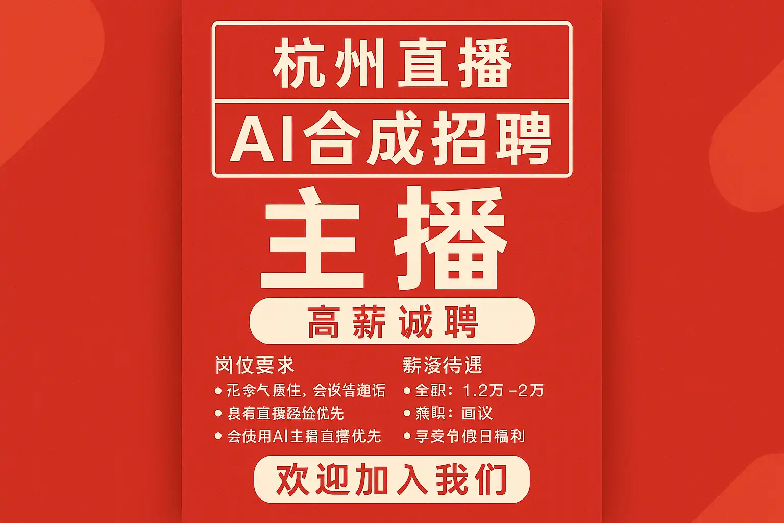 《杭州直播AI合成招聘最新信息,杭州直播AI合成招聘靠谱吗?》