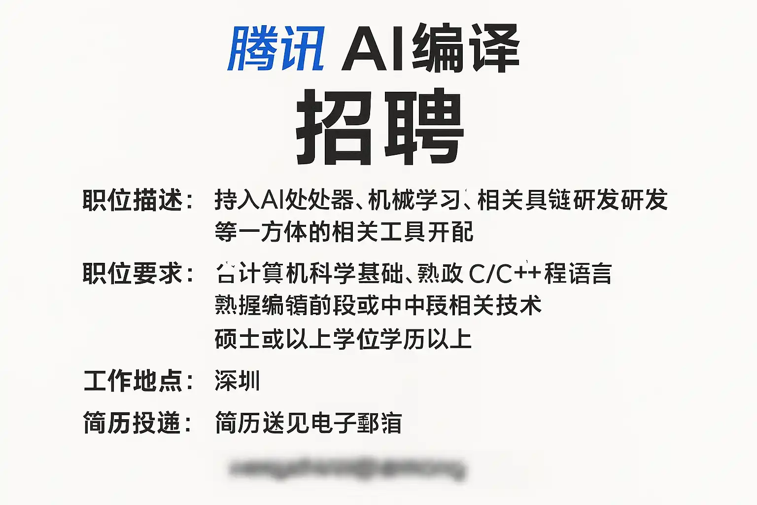 截至2024年6月,腾讯AI编译招聘信息主要包括以下几个方面: