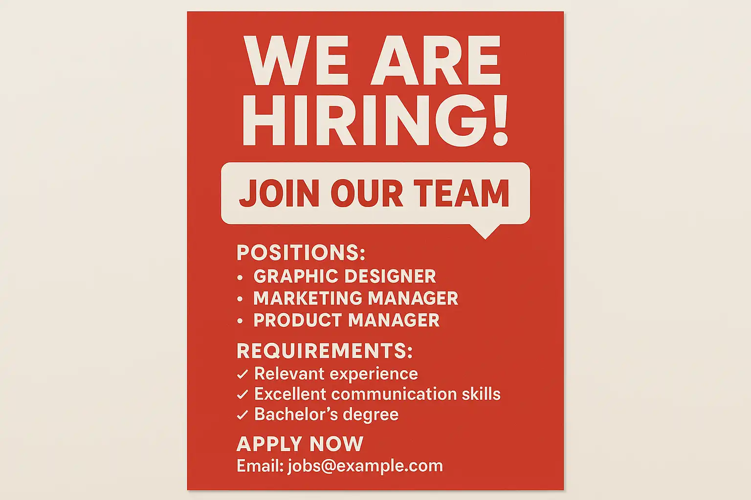 - 保持内容格式和语气的针对性调整,如面向年轻群体的岗位可在文案中使用更活泼的语言。