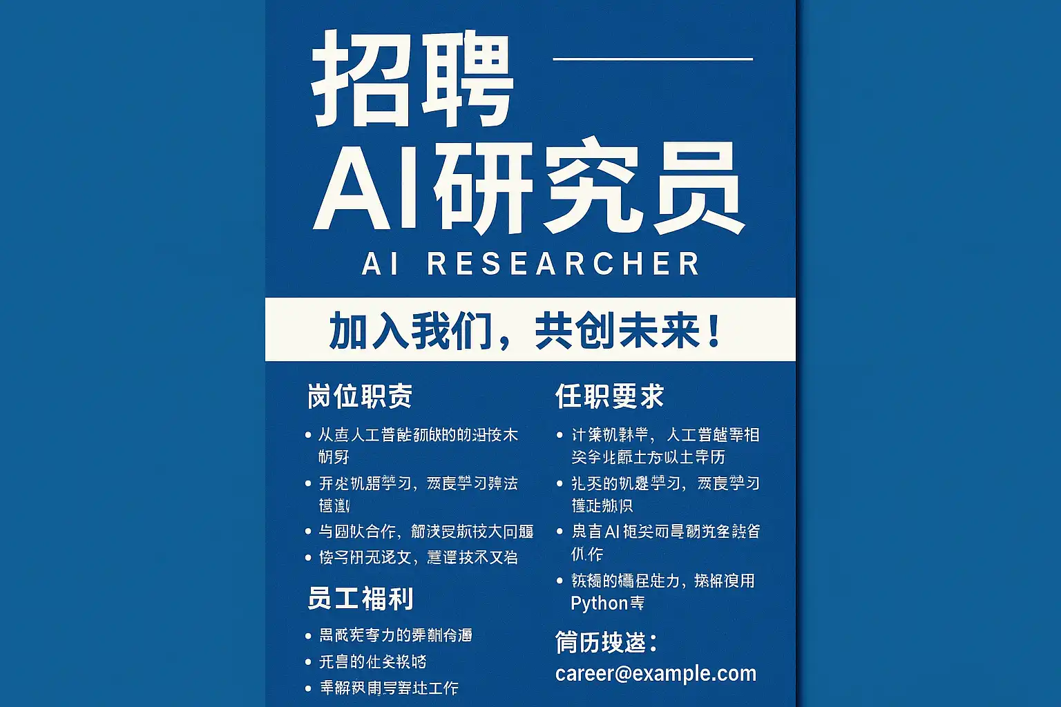- 目标:4–8周内招到能“读论文→做原型→上线A/B”的AI研究使用员,且通过90天试用期考核。