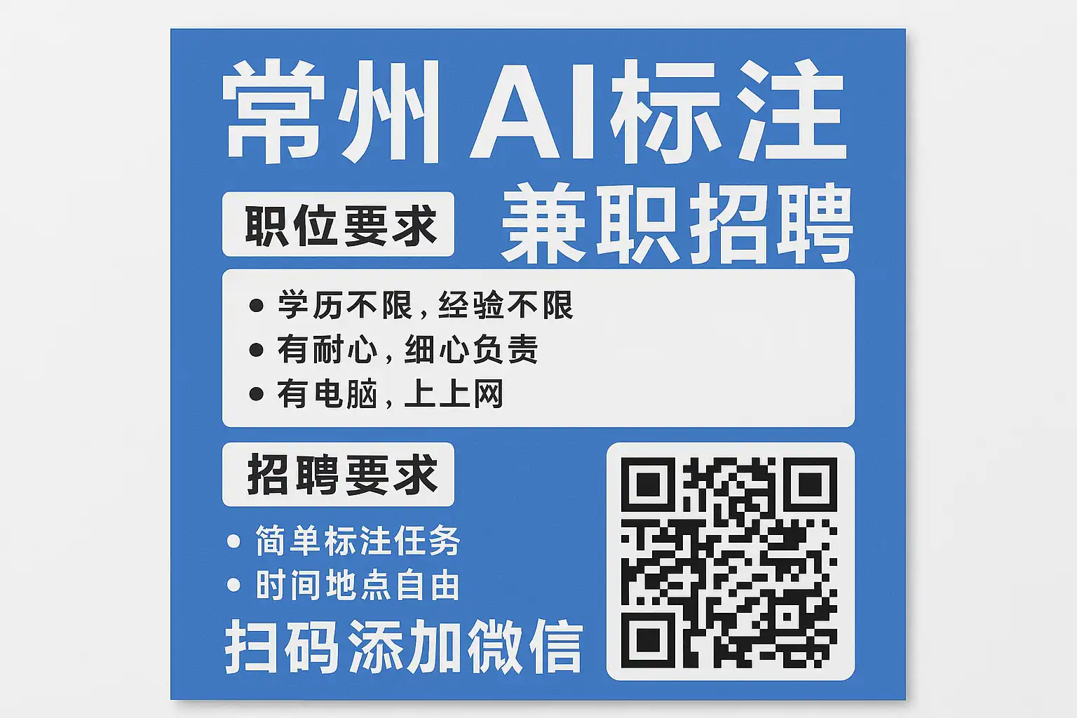 - 本地微信群和论坛:常州本地的AI技术交流群或兼职论坛,经常发布优质兼职信息。