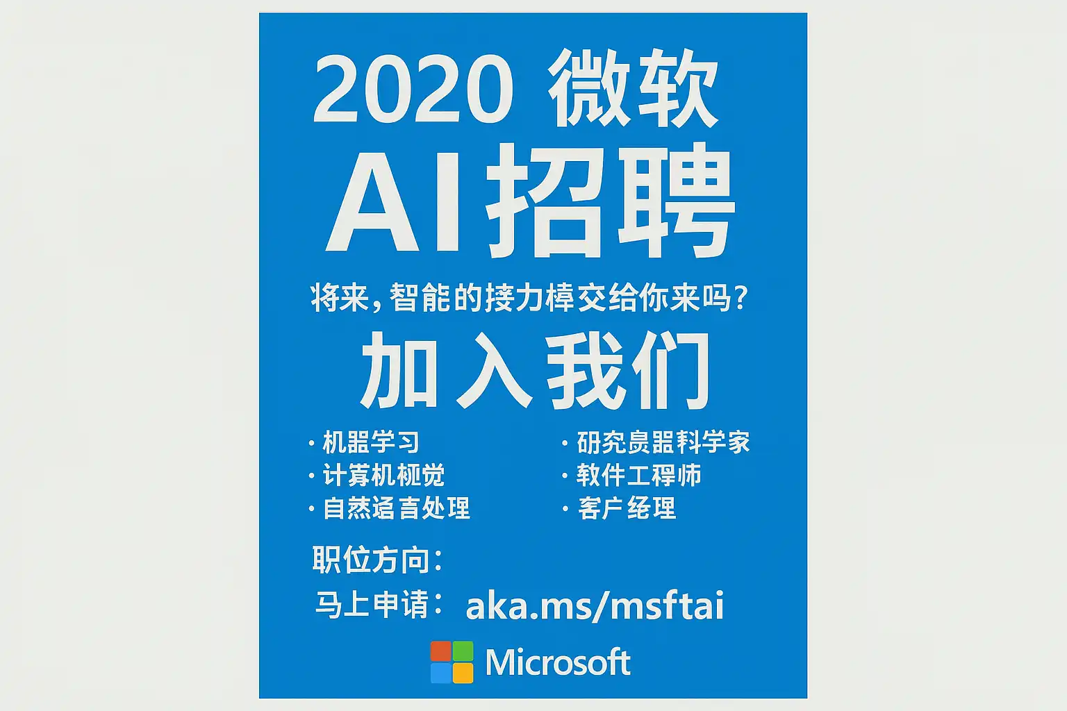 微软AI招聘2020岗位对技术和软技能的具体要求是什么?