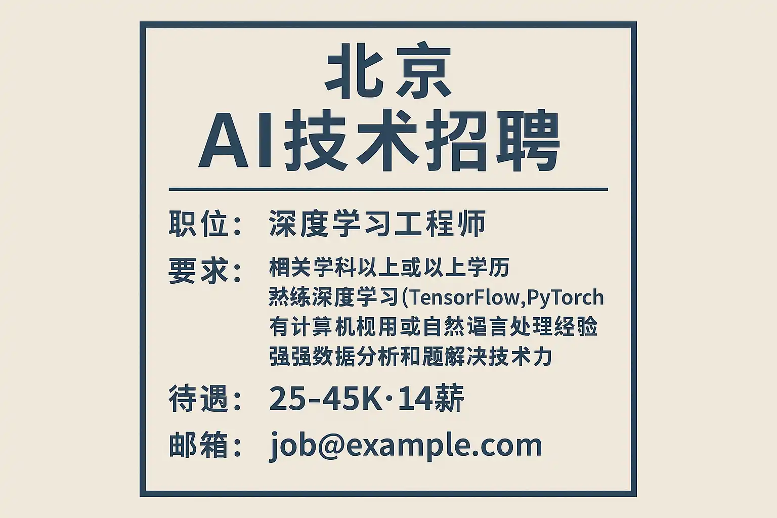 - 招聘会和线上宣讲会:定期参加北京地区的AI人才招聘活动。
