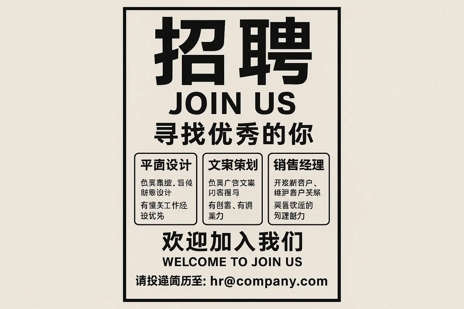 - 结构化排版优化:AI自动调整广告结构,如职位职责、任职要求分段清晰,增强可读性。