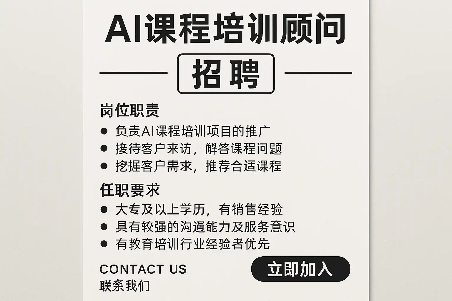 《AI课程培训顾问招聘最新信息,如何成为专业培训顾问?》