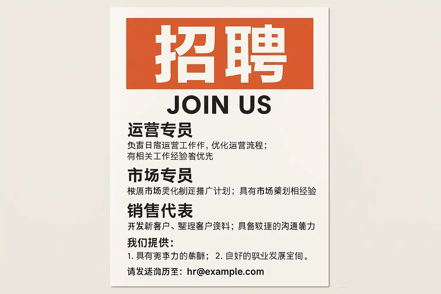 | 虚假承诺 | “收入翻倍” | “薪酬区间与绩效说明明确” | 避免绝对化 |