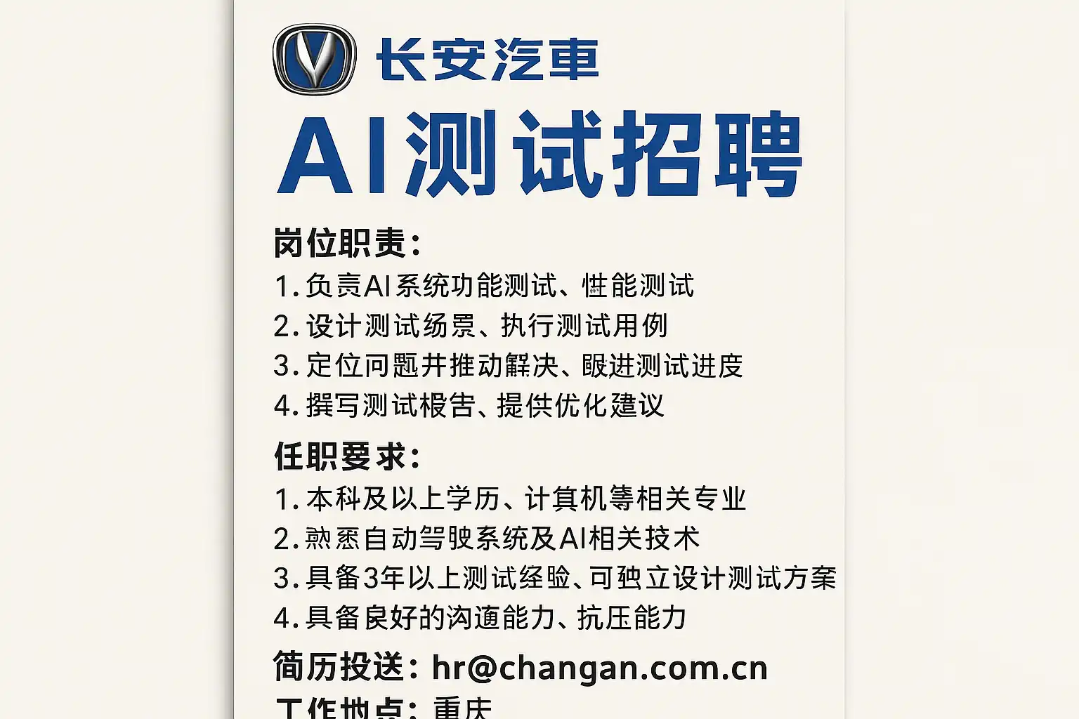 《长安汽车招聘AI测试,岗位职责有哪些?长安汽车AI测试职位,如何快速通过面试?》