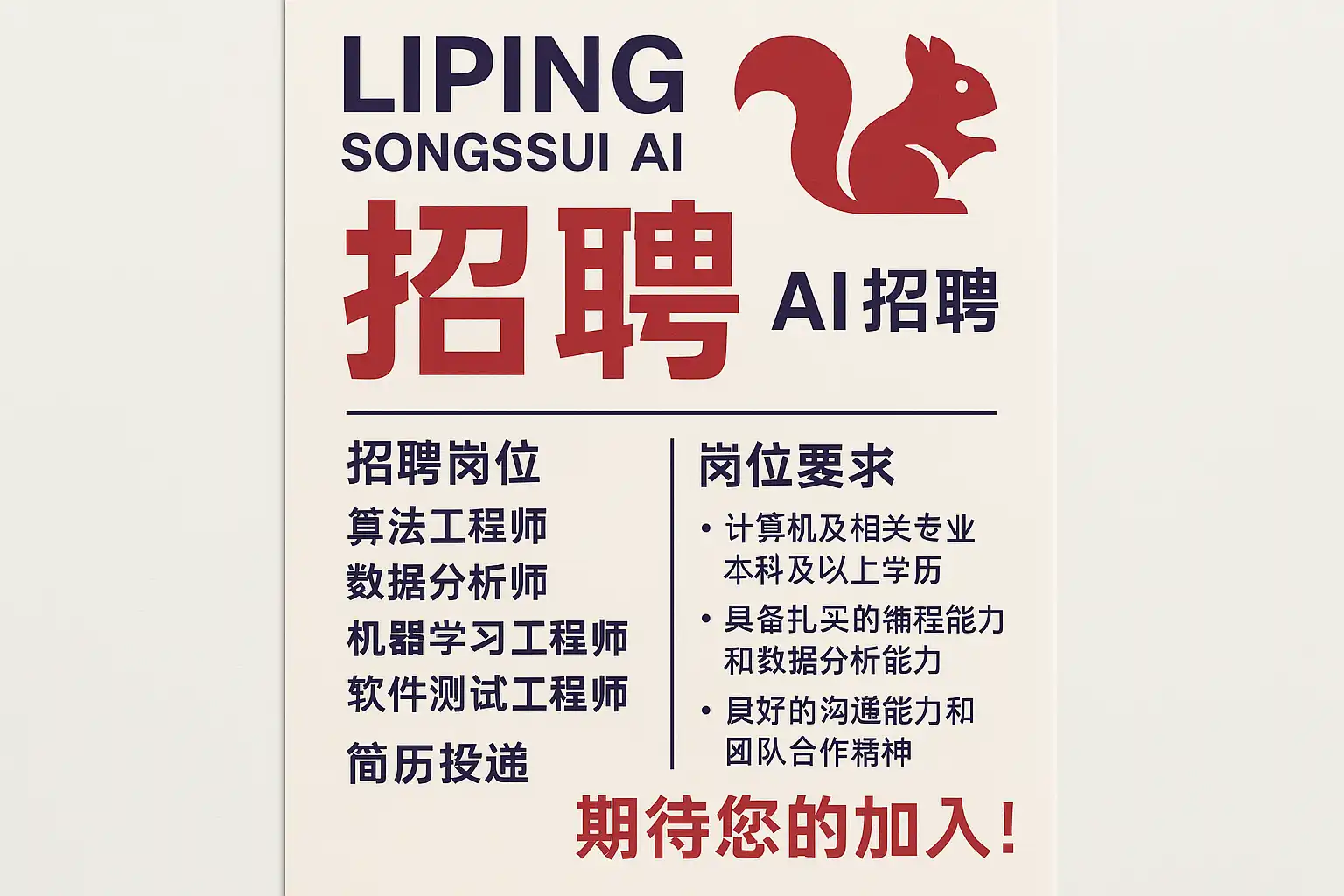 我最近关注了黎平松鼠AI的招聘动态,但信息比较零散,想了解最新的招聘岗位、要求和时间安排,方便我做好准备。