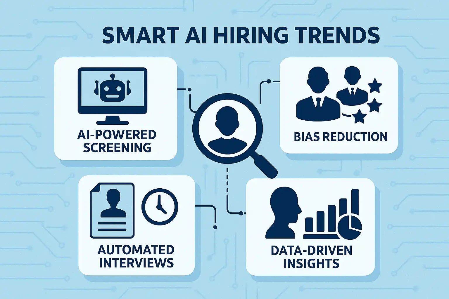 作为HR,我经常听说智能AI招聘正在改变招聘方式,但具体会有哪些趋势和变化?我想了解未来招聘会有哪些显著的不同点,方便我提前做好准备。