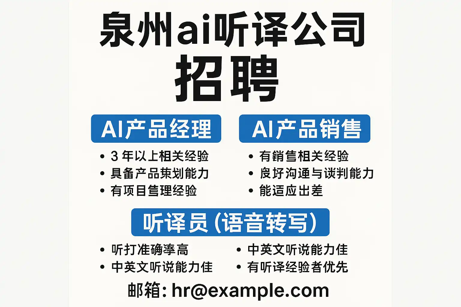 泉州AI听译公司的招聘新机遇主要涵盖以下几个方向: