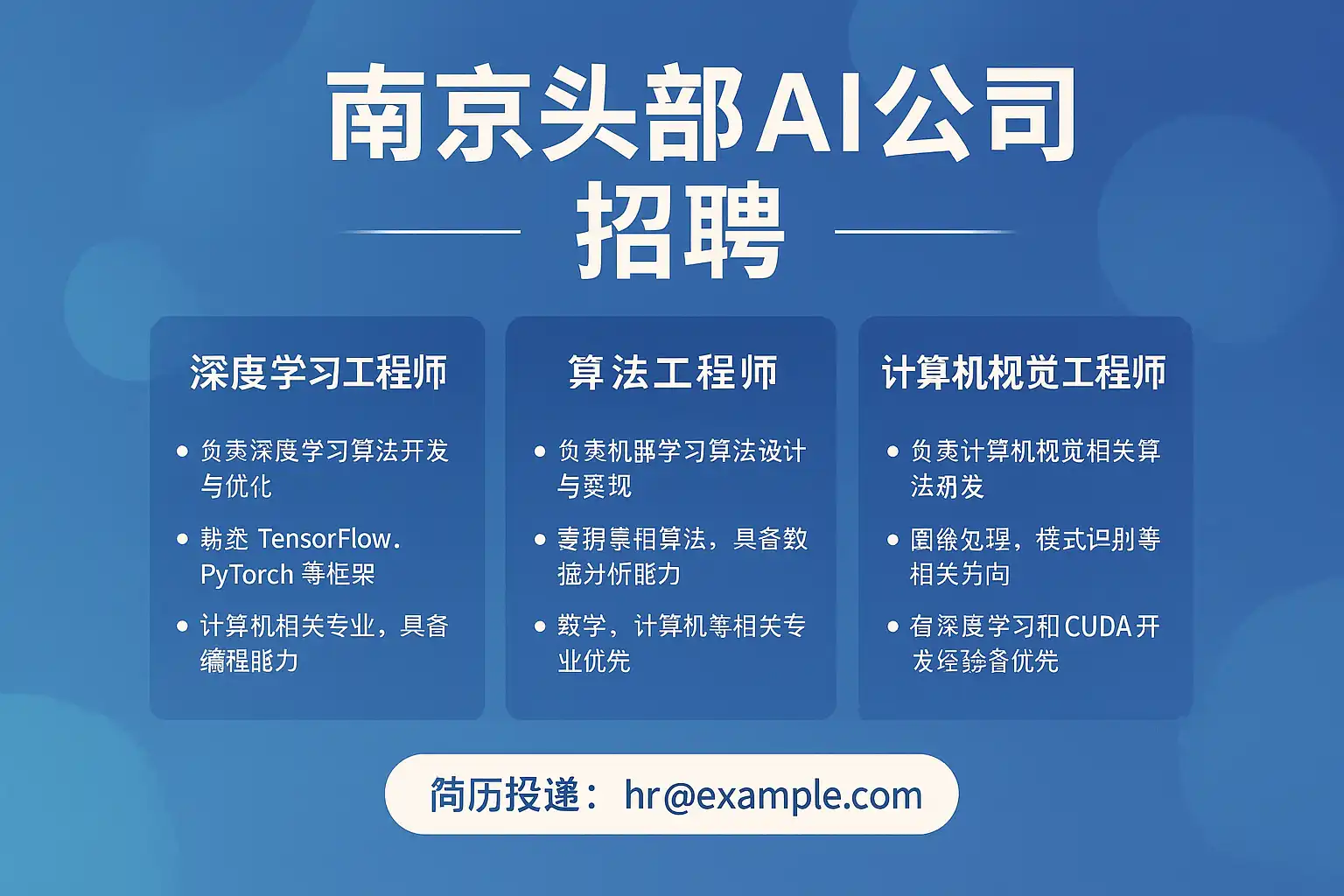 南京头部AI公司招聘的典型岗位主要包括: