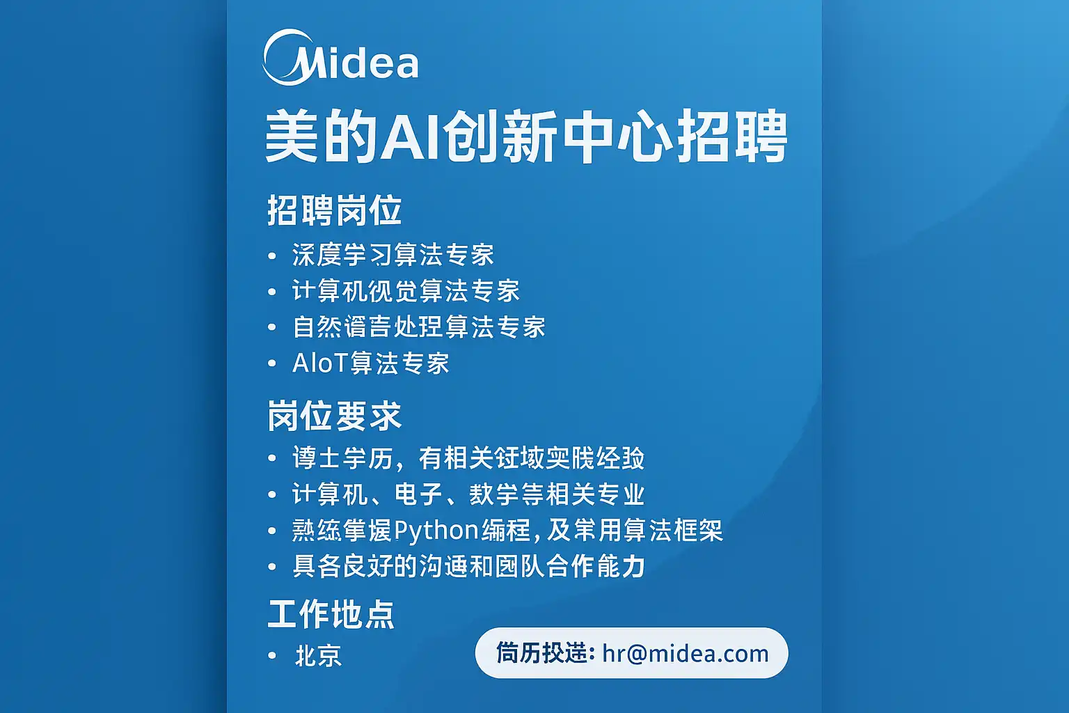《美的AI创新中心招聘最新信息 美的AI创新中心有哪些岗位开放?》
