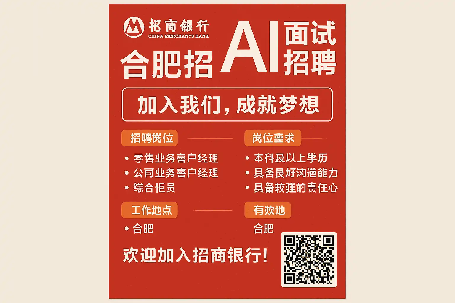 我最近听说招行在合肥开展AI面试招聘,但具体的最新招聘信息不太清楚。招行合肥AI面试的招聘时间、岗位和要求具体是怎样的?