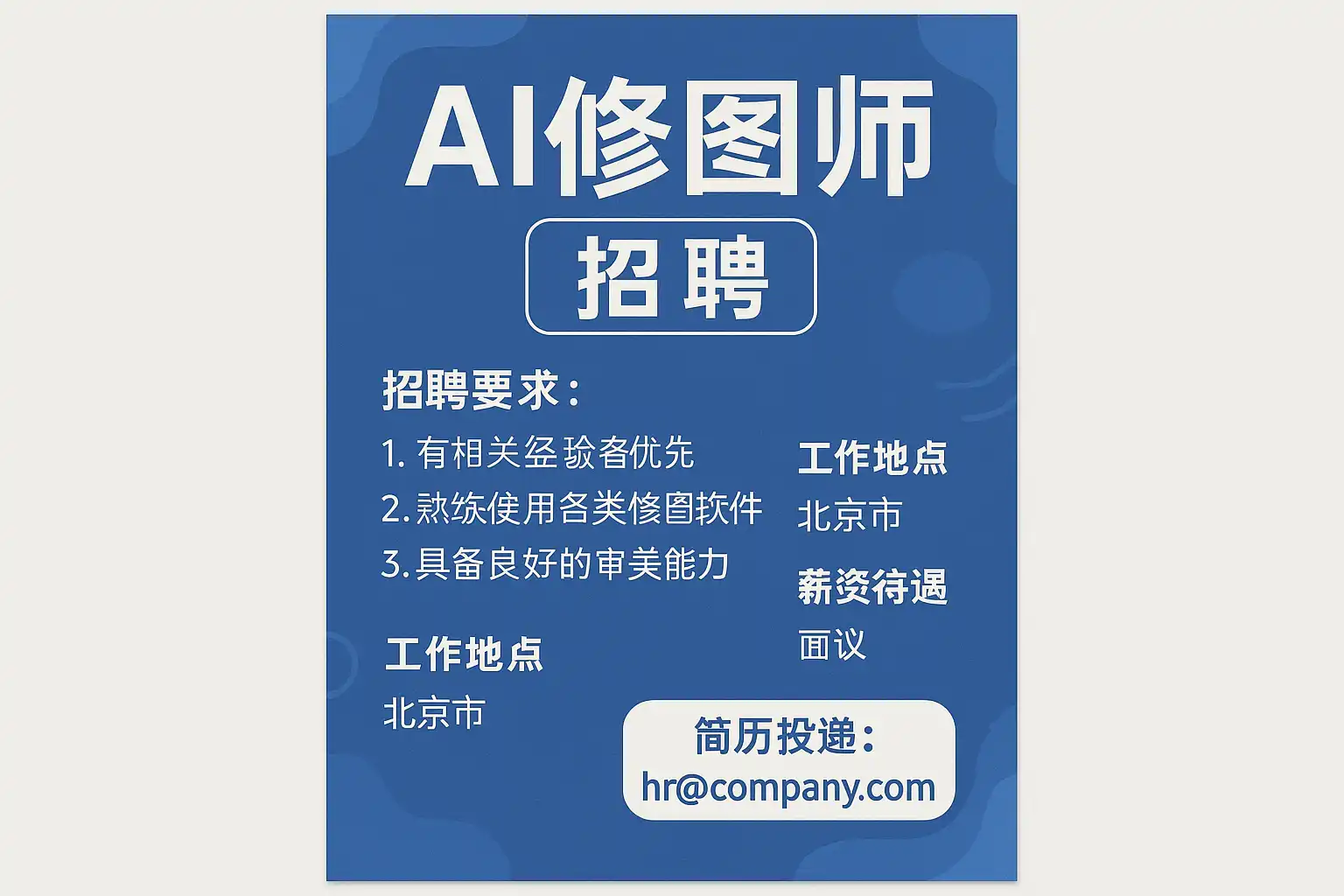 - 公司行业及规模:不同行业(电商、广告、游戏)对AI修图师的需求侧重点不同。