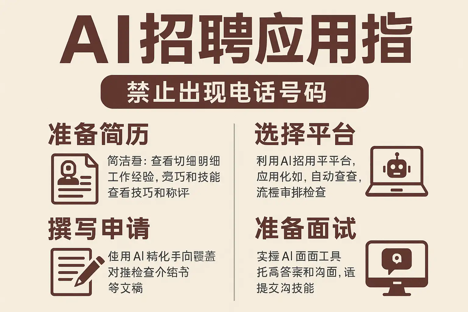 - 列表用于分步骤或分要点说明,如“AI招聘提升效率的四大步骤”,帮助读者快速抓住重点。