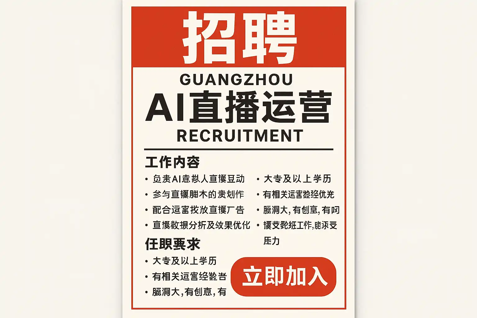 广州AI直播运营招聘最新信息,如何快速入职?