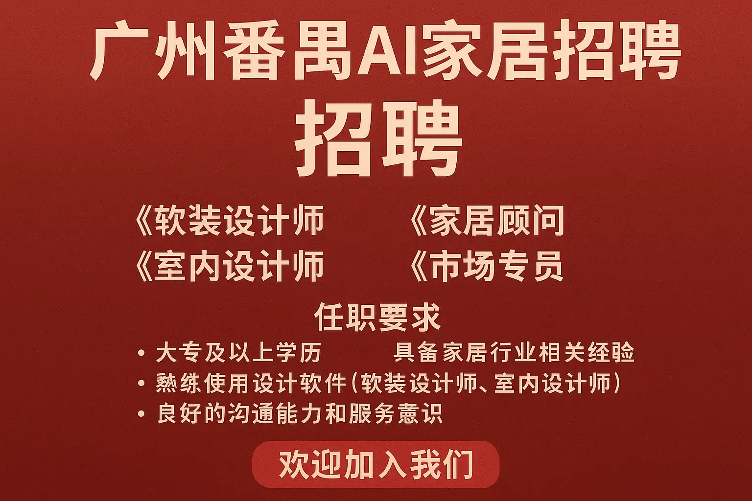 广州番禺AI家居招聘最新信息主要集中在以下几个方面: