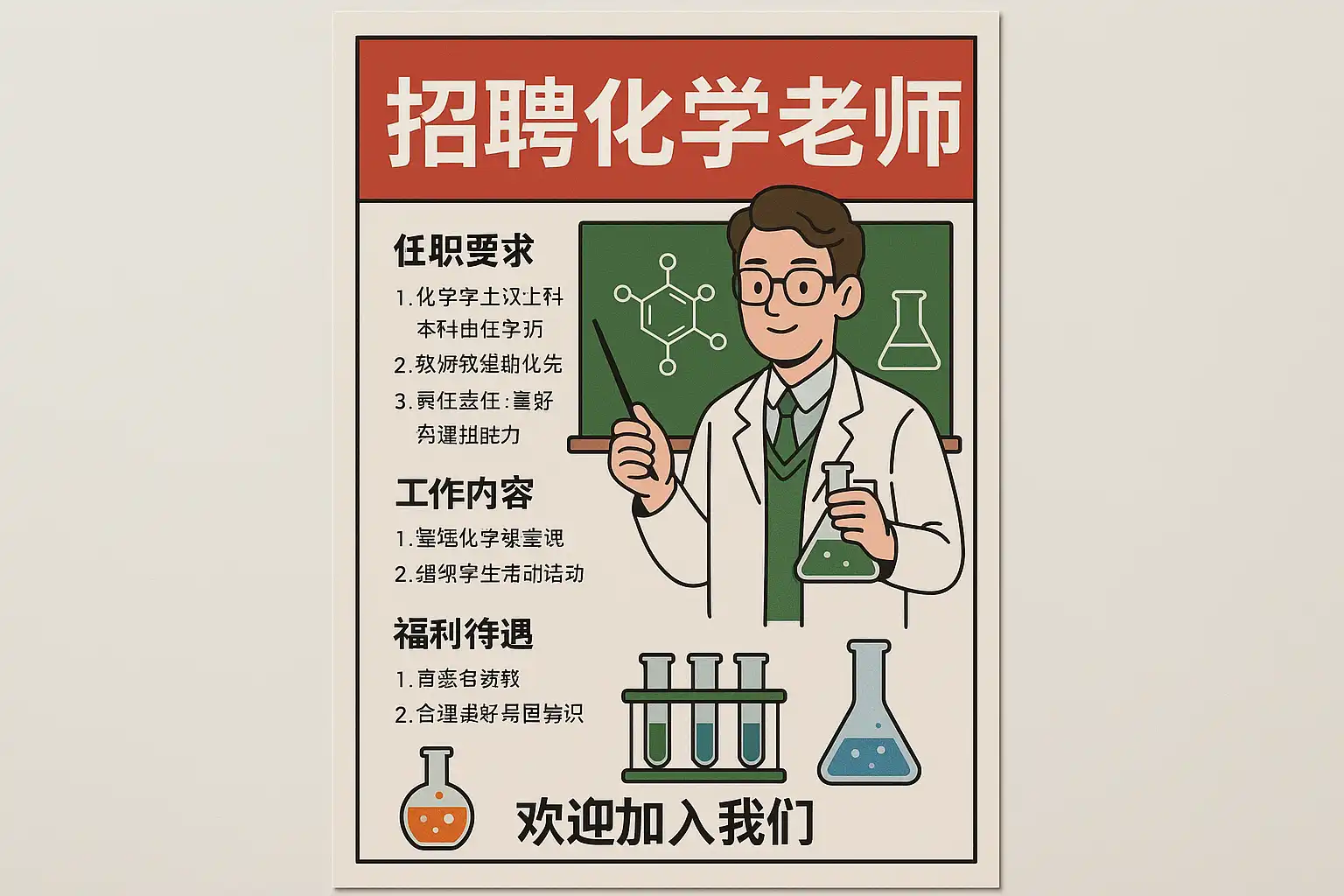 AI绘画化学老师招聘,如何确定候选人的专业技能?