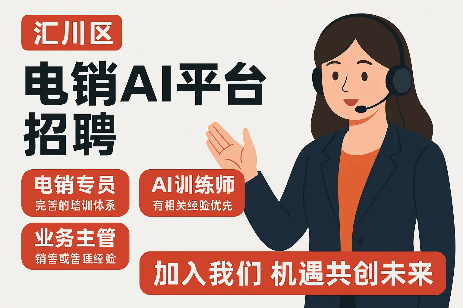 - 核心关键词自然出现:汇川区电销AI平台招聘、电话销售岗位、外呼系统、语音机器人、智能质检、CRM集成、应聘成功率。