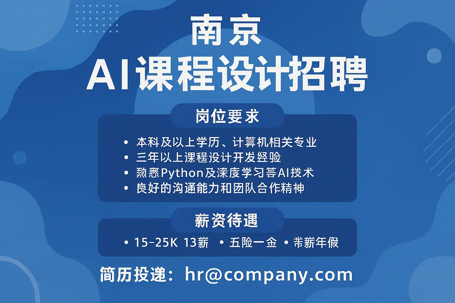 在南京的AI课程设计招聘场景中,这些职责将结合本地产业案例与高校资源,增强课程的在地化与落地效果。
