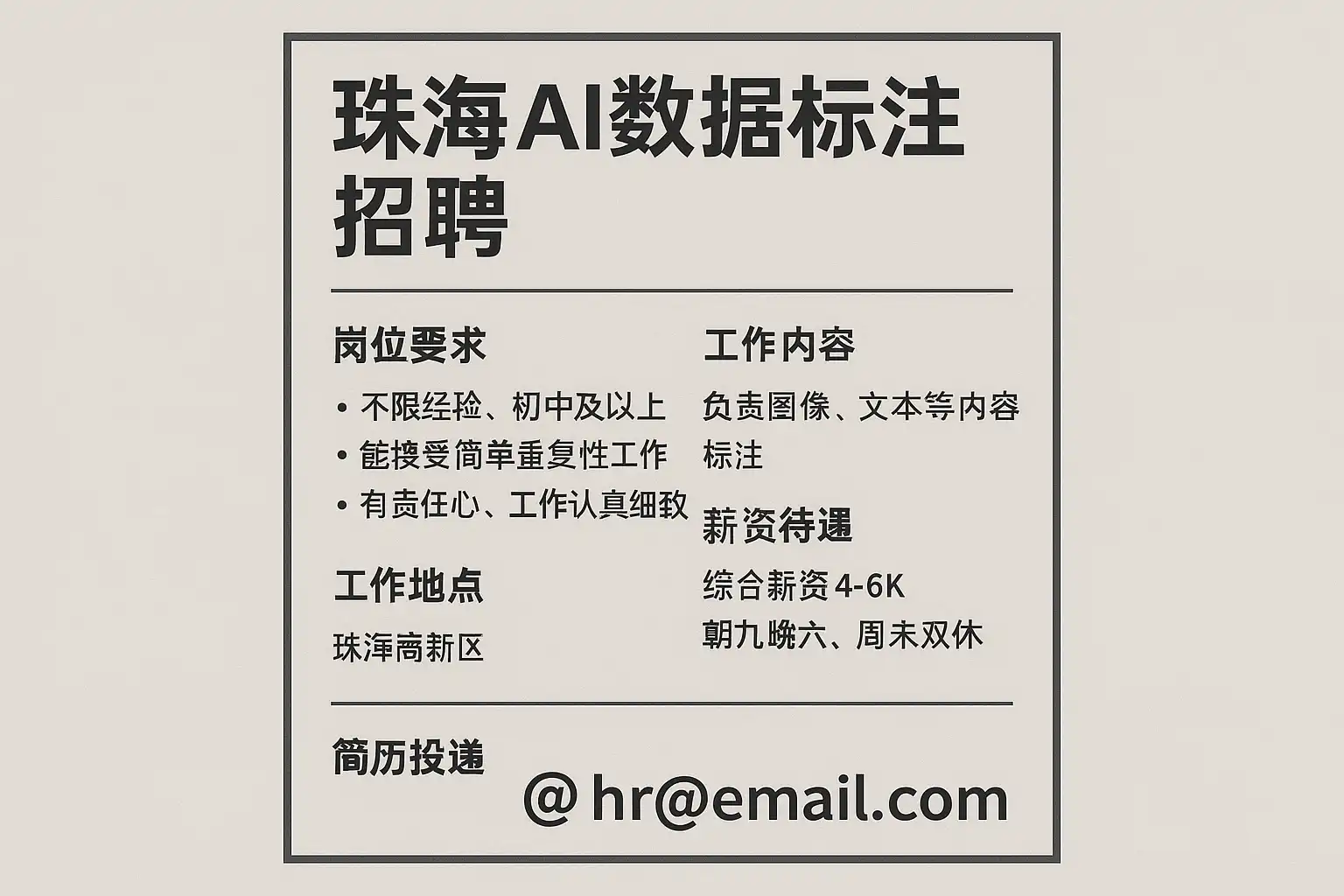 市场驱动关键词:AI数据标注、招聘机会、珠海岗位、跨境外包、生成式AI。