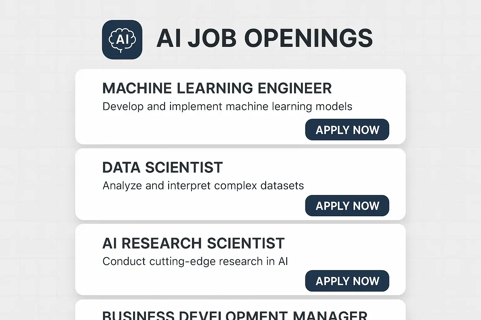 - 算法工程师:设计和优化招聘相关的AI算法,要求熟悉机器学习和自然语言处理技术。