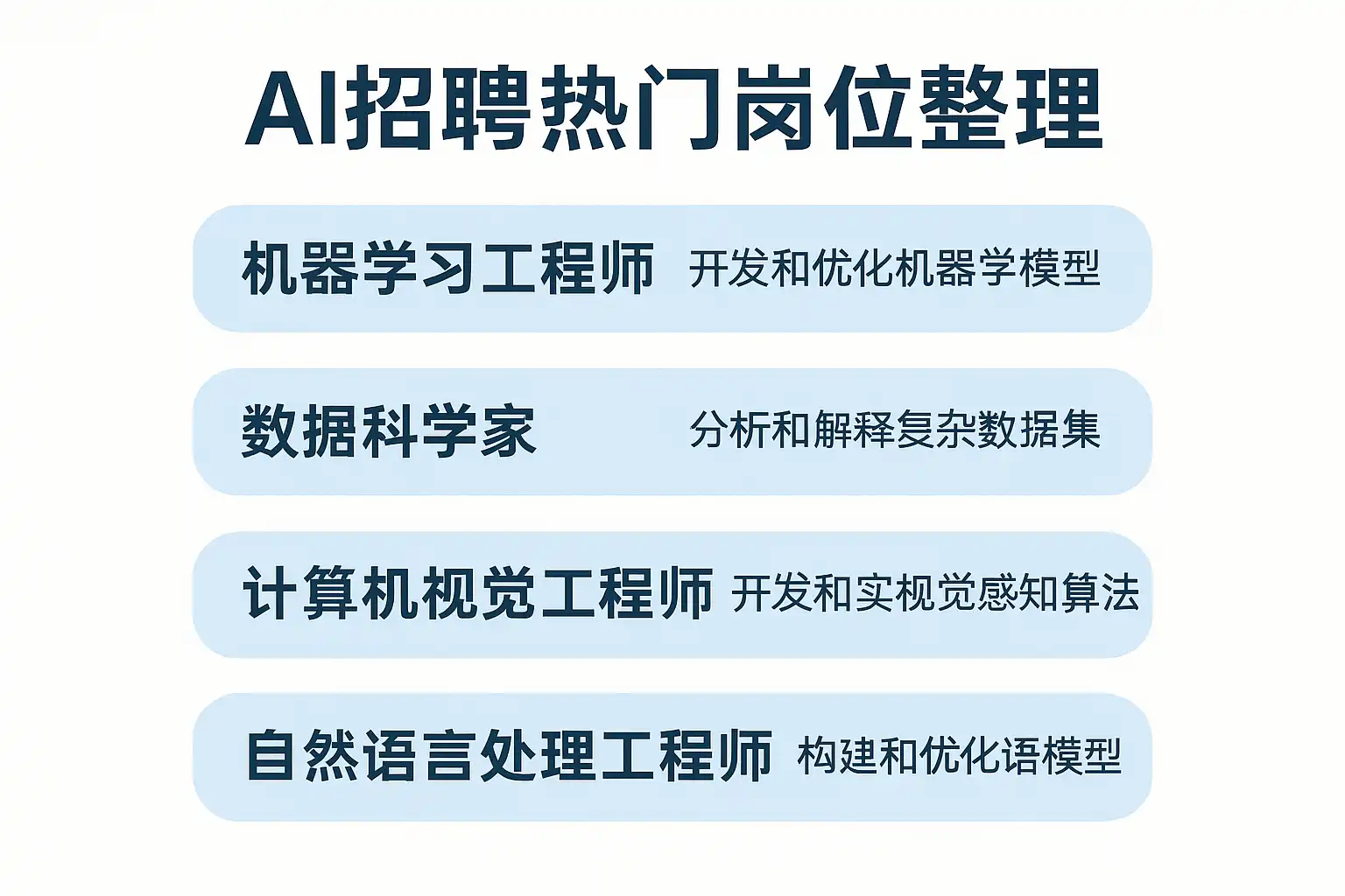 为提高AI招聘命中率,下面对热门岗位进行更细化的职责拆解与技能地图构建,支持人才画像与胜任力模型设计。
