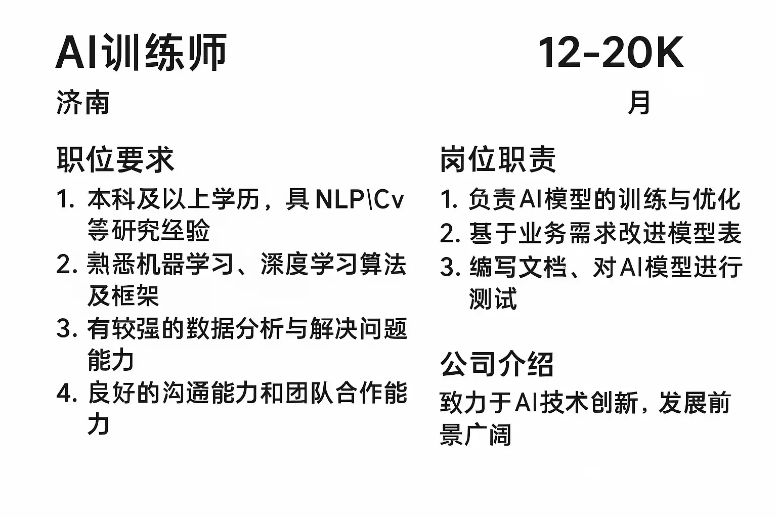 | 济南AI训练师招聘 | AI Trainer Jinan | 定位本地与周边城市 |