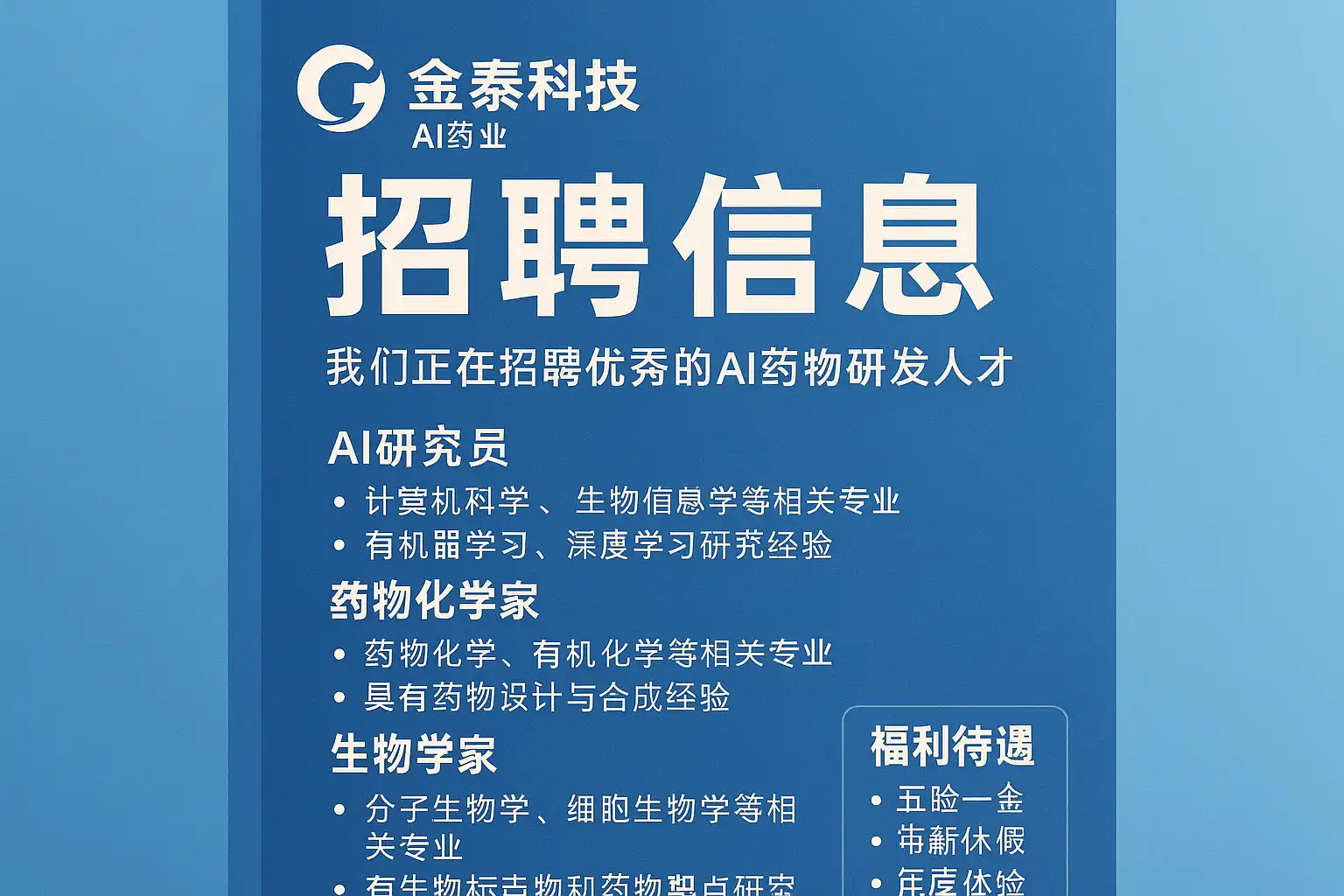 《金泰科技AI药业招聘信息,最新职位有哪些机会?》